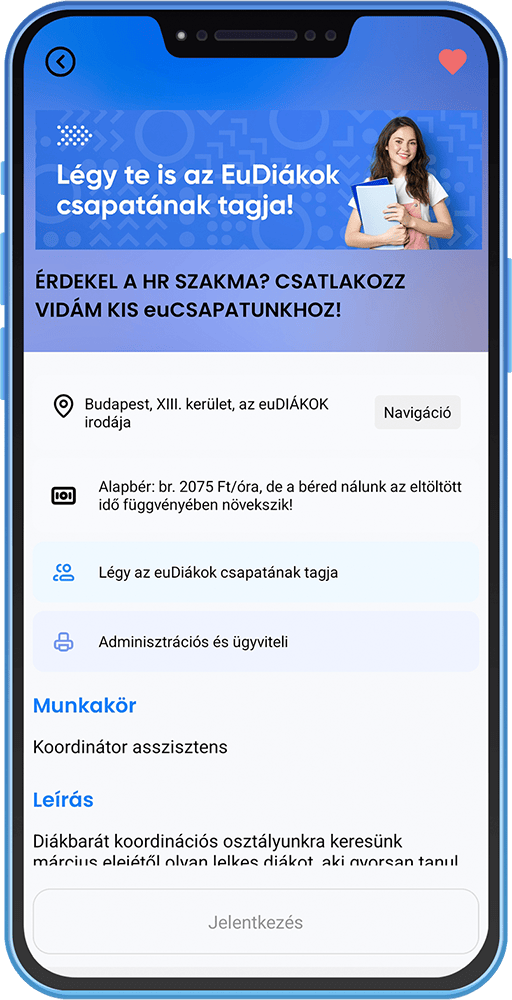A Kedvenc munkák menüben találod azokat a hirdetéseket, amelyeket korábban a szívecske ikonnal elmentettél.