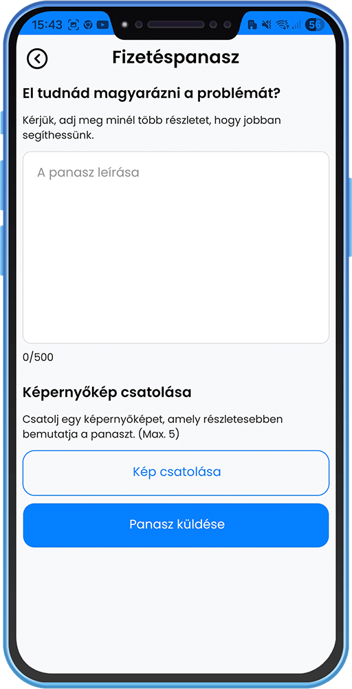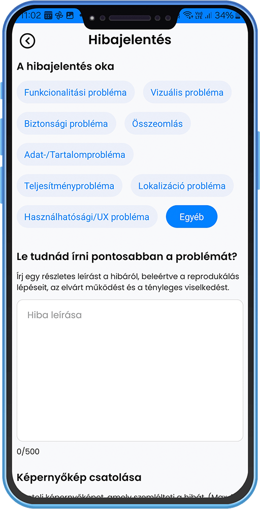 A Hibabejelentés menüben jelezheted, ha az alkalmazás működésében hibát vagy rendellenességet tapasztalsz.
