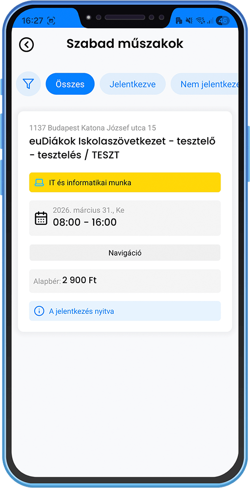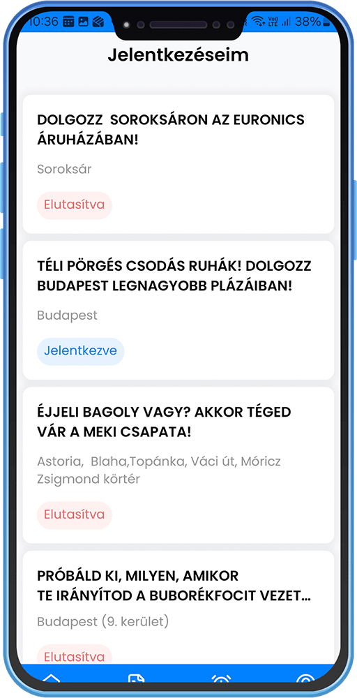 A Jelentkezéseim menüben követheted azokat a munkákat és műszakokat, amelyekre már jelentkeztél.