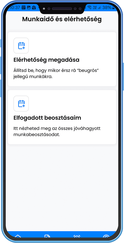 A Munkaidő menüben láthatod az elfogadott beosztásokat, és megadhatod az elérhetőségedet is.