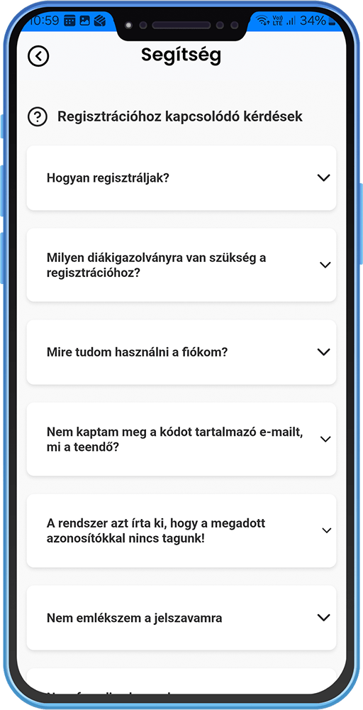 A Segítség menüben a leggyakoribb kérdésekre és problémákra találsz gyors választ.