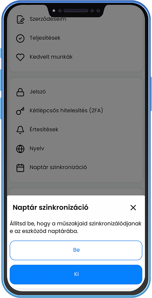 A naptár szinkronizáció az appunk egy nagyon hasznos funkciója. A műszakok, amelyekre beosztottak, látszódni fognak a Google- vagy Apple-naptáradban. Ha ezt mégsem szeretnéd, itt tudod kikapcsolni a funkciót.