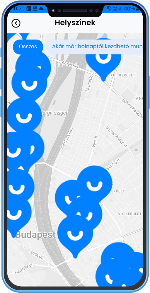 A helyszínek menüben a térképen tudsz keresni munkalehetőségeink között, itt is a hirdetéseket fogod megtalálni.