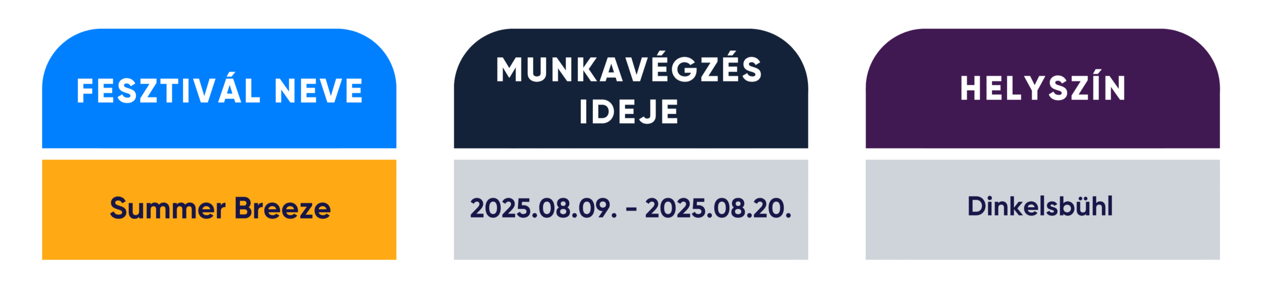 | Fesztivál neve | Munkavégzés ideje | Helyszín |